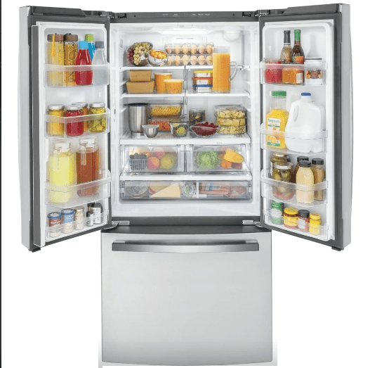 GE GDE25EYKFS Bottom Mount Refrigerator, 33" Width, ENERGY STAR Certified, 24.8 cu. ft. Capacity, Fingerprint Resistant Stainless Steel colour Glass Shelves, APF technology