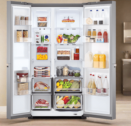 GE GSS23GYPFS Side by Side Refrigerator, 33 inch Width, Ice Dispenser (Thru Door), Water Dispenser (Exterior), 23.2 cu. ft. Capacity, STAINLESS STEEL colour Multi-Level Drawers, Edge-to-edge glass shelves