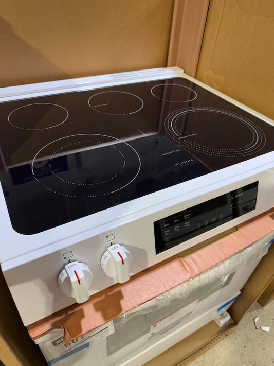 Frigidaire FCFE306CAW Electric Range, 5 cu. ft. Capacity, 30 inch Exterior Width, 5 Burners, Storage Drawer, 3,200 Watts Highest Burner Element, White colour