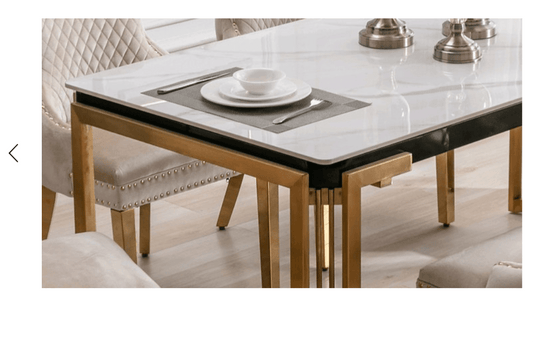 Ceramic Marble Top With Stainless Gold Legs Creme Velvet Dining Chair with Large Knocker,