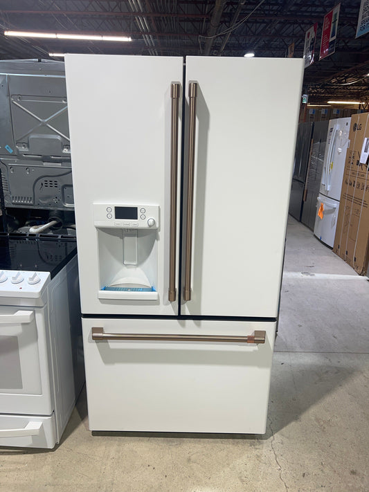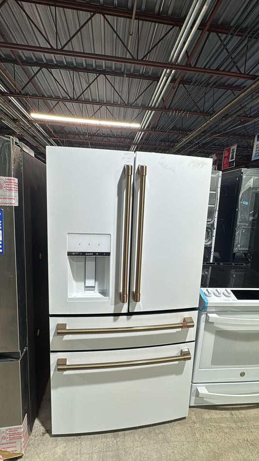 Cafe CVE28DP4NW2 French Door Refrigerator, 36 inch Width, ENERGY STAR Certified, 27.8 cu. ft. Capacity, Water Dispenser (Exterior), Ice Dispenser (Thru Door), Matte White colour AutoFill Refurbished 3 Years Warranty