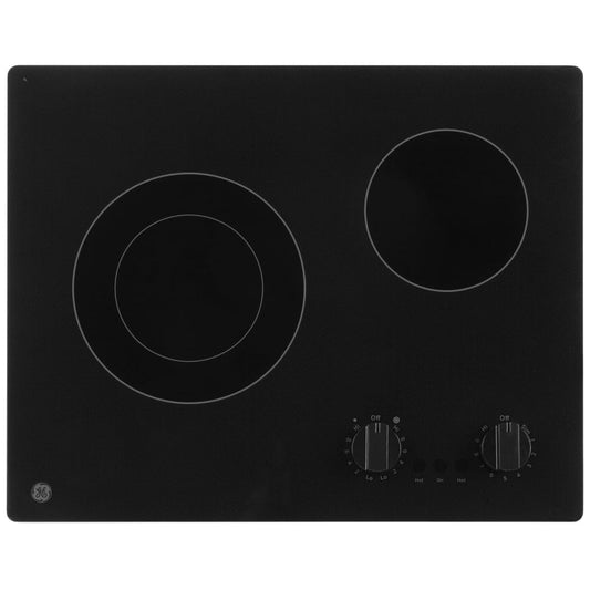 GE JP3021DPBB Electric Cooktop, 21 inch Exterior Width, 2 Burners, 2,500 Watts Highest Burner Element, Black color