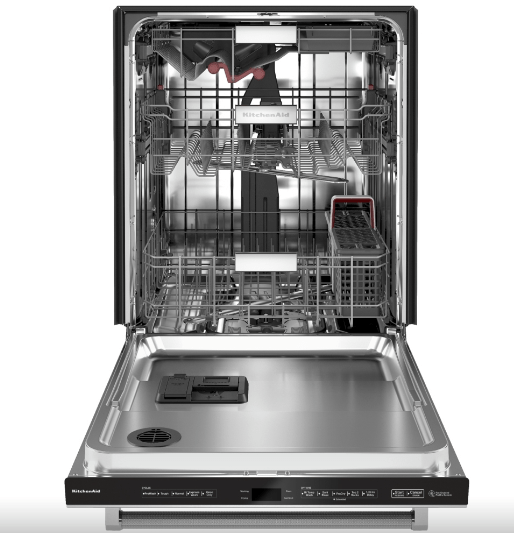 itchenAid KDFE204KBL Dishwasher, 24 inch Exterior Width, 39 dB Decibel Level, Full Console, Stainless Steel (Interior), 5 Wash Cycles, 13 Capacity (Place Settings), Black colour SatinGlide Racks
