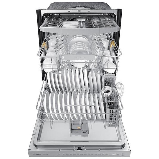 Samsung DW80CG5450SRAA Dishwasher, 24 inch Exterior Width, 45 dB Decibel Level, Fully Integrated, Stainless Steel (Interior), 7 Wash Cycles, 15 Capacity (Place Settings), 3 Loading Racks, Wifi Enabled, Stainless Steel color