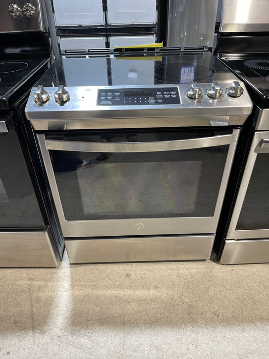 GE 30" Electric Slide-In Front Control True Convection Range with Storage Drawer Stainless Steel - JCS840SMSS