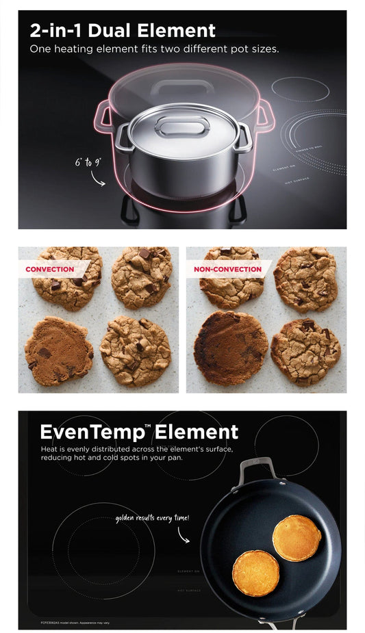 Frigidaire Gallery GCFE306CBD Range, Electric, 30 inch Exterior Width, Self Clean, Convection, 5 Burners, 6.2 cu. ft. Capacity, Black Stainless Steel