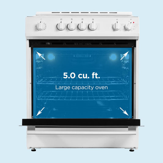 Danby 30” Slide in Smooth Top Electric Range with Knob Controls in White SKU: DRRM300WC