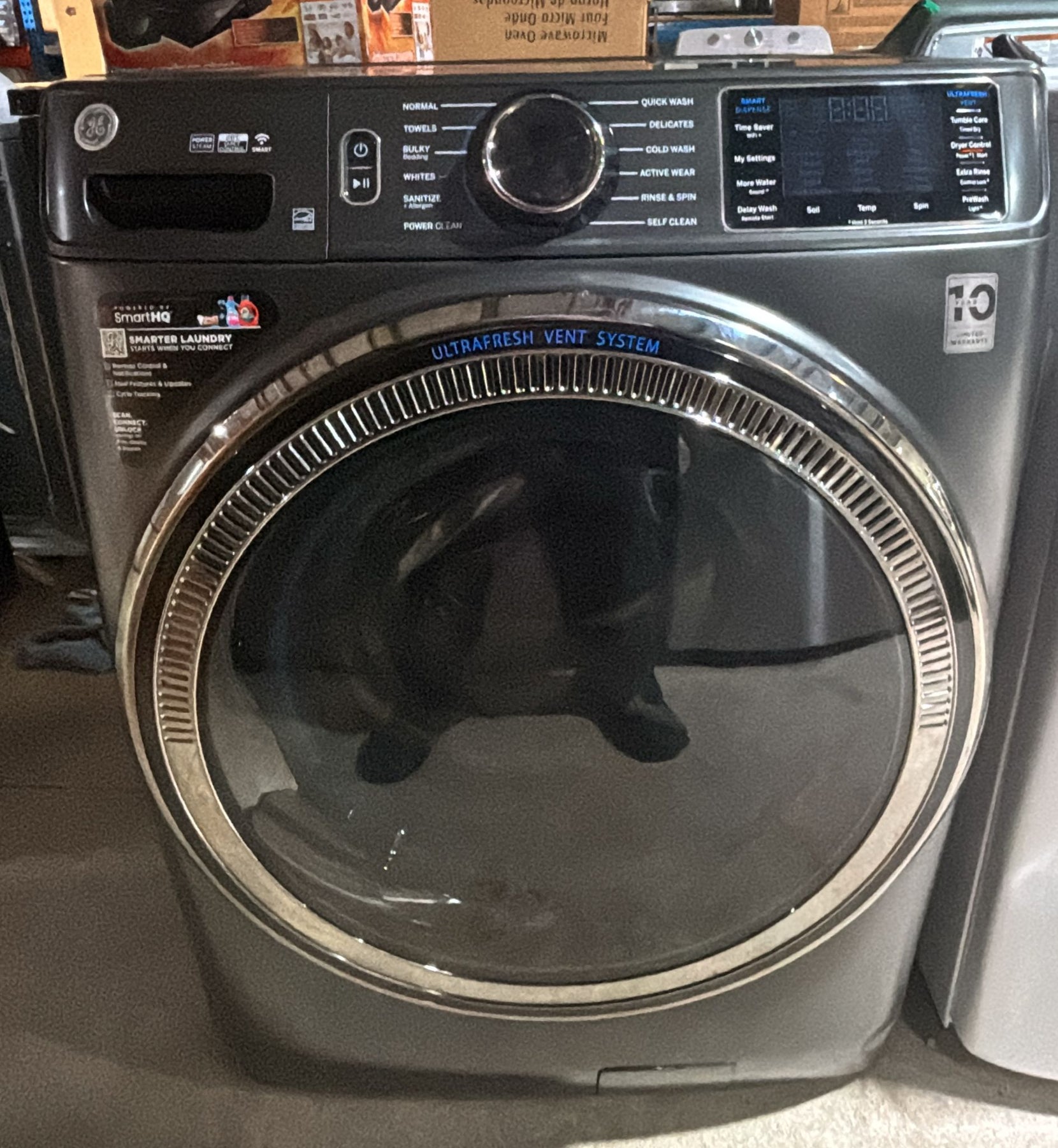 GE GFW655SPVDS Front Load Washer, 28 inch Width, 5.8 cu. ft. Washer Capacity, 1,300 RPM Washer Spin Speed, 12 Wash Cycles, 5 Temperature Settings, Steam Clean, ENERGY STAR Certified, Wifi Enabled, Graphite colour