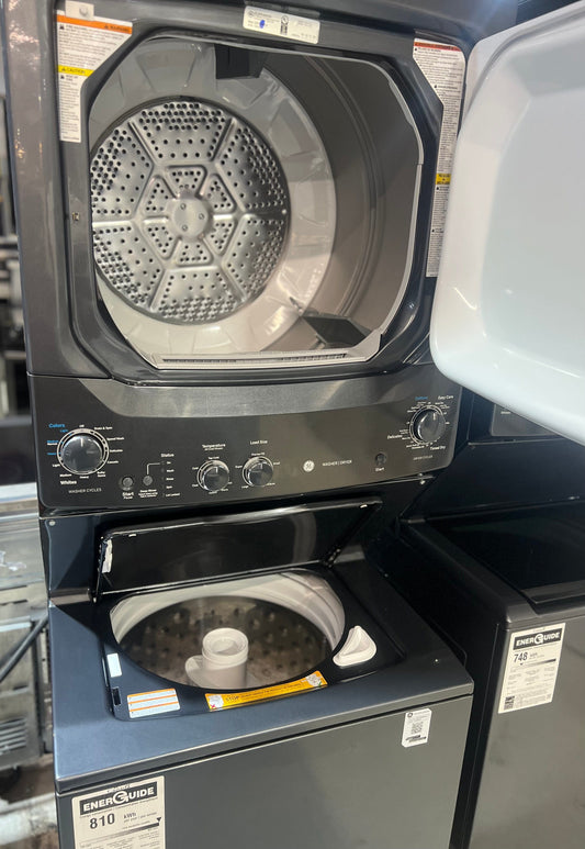 GE GUD37ESMMDG Laundry Center, 27" Width, 5.9 Cu. Ft. Capacity (Dryers), Electric, 27" Exterior Width, Capacity, 11 Wash Cycles, 800 RPM Washer Spin Speed, 4.4 Washer Capacity, Diamond Grey colour Contains Agitator RF
