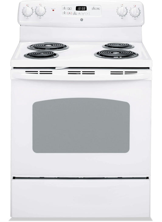 GE JCBS250DMWW JCBS250DM3WW Range, Free Standing, Electric Range, 30 inch Exterior Width, 4 Burners, Coil Burners (Electric), White