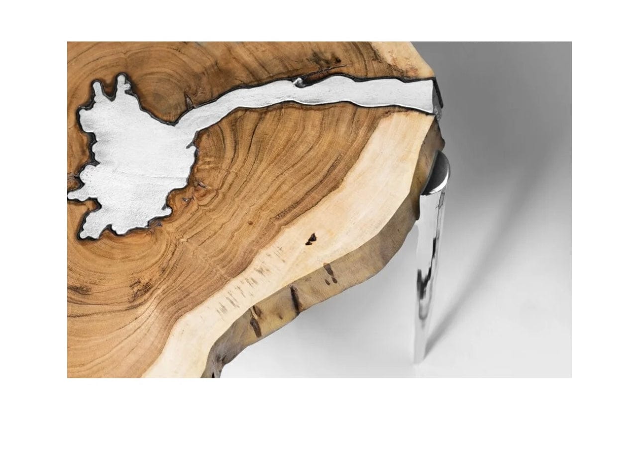 AKIS Side Table XC-4255B Black Wood/Natural Wood w/ Aluminum fill