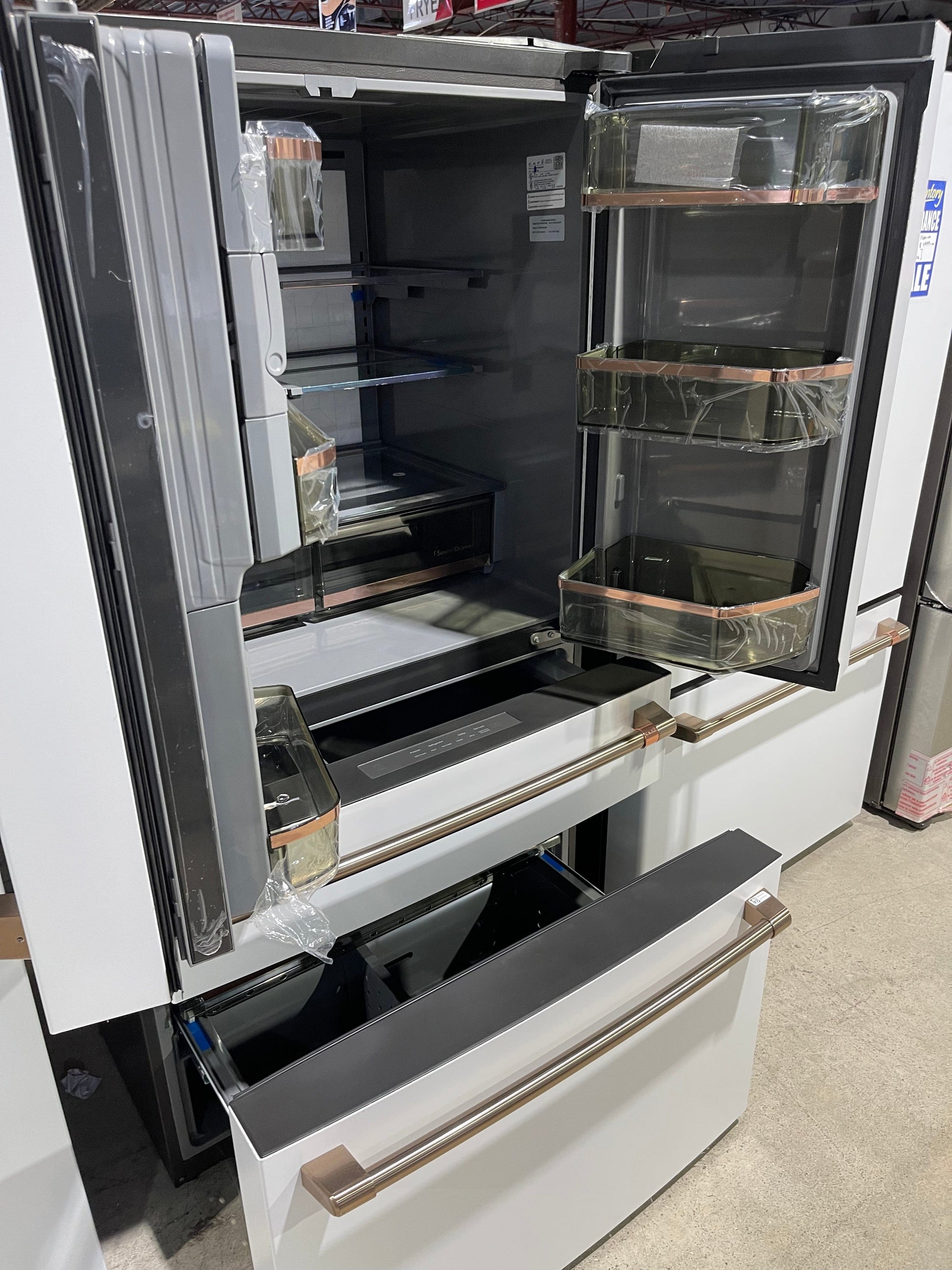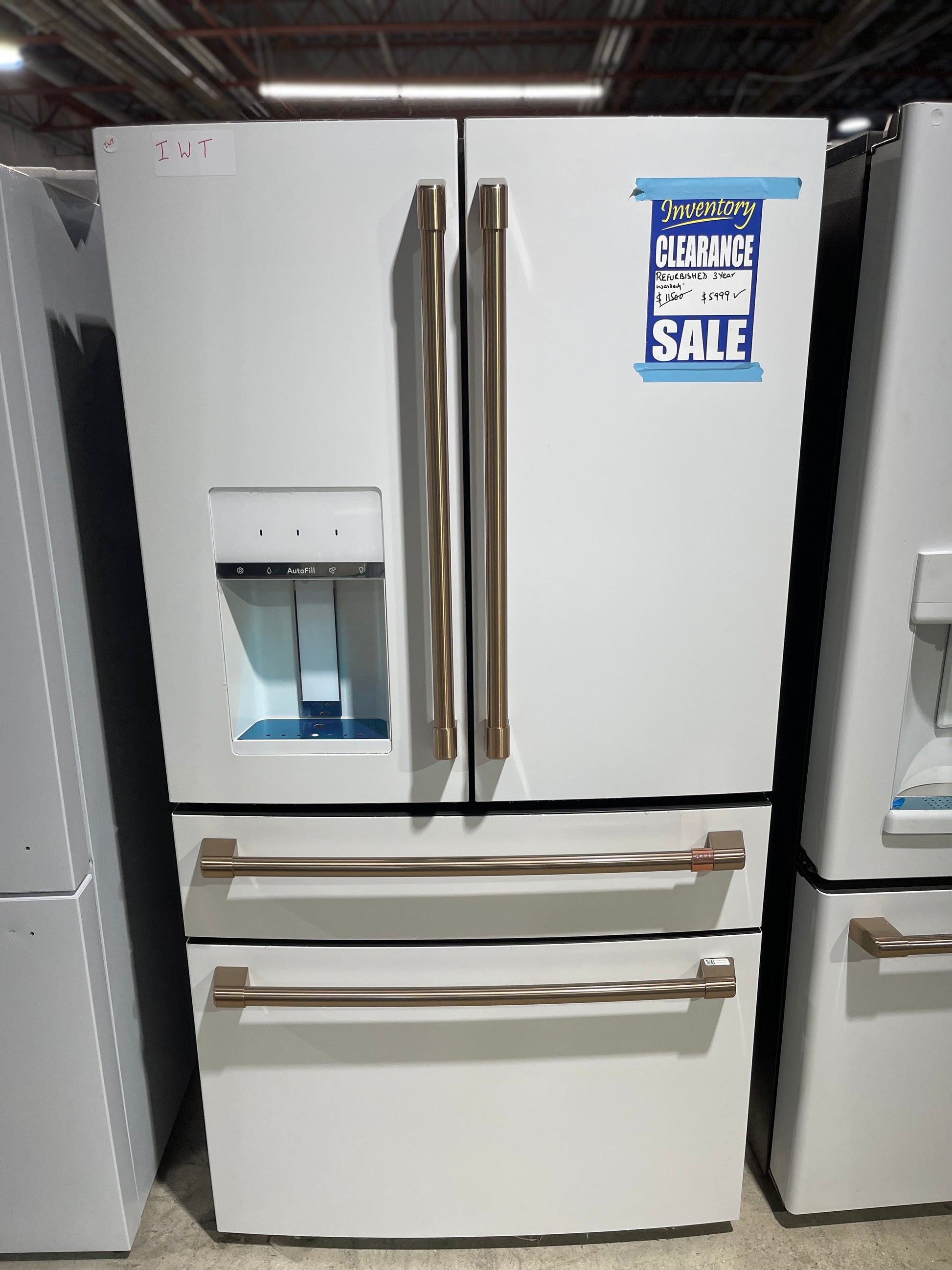 Cafe CVE28DP4NW2 French Door Refrigerator, 36 inch Width, ENERGY STAR Certified, 27.8 cu. ft. Capacity, Water Dispenser (Exterior), Ice Dispenser (Thru Door), Matte White colour AutoFill Refurbished 3 Years Warranty