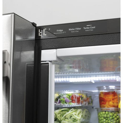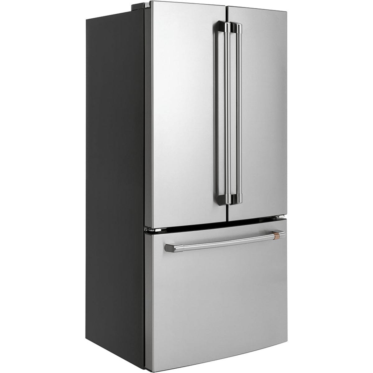 Cafe (CWE19SP2NS1) French Door Refrigerator, 33" Width, ENERGY STAR Certified, Counter Depth, 18.6 cu. ft. Capacity, Freezer Located Ice Dispenser, Interior Water Dispenser, LED Lighting, Stainless Steel colour Turbo Cool, Quick Space Shelves