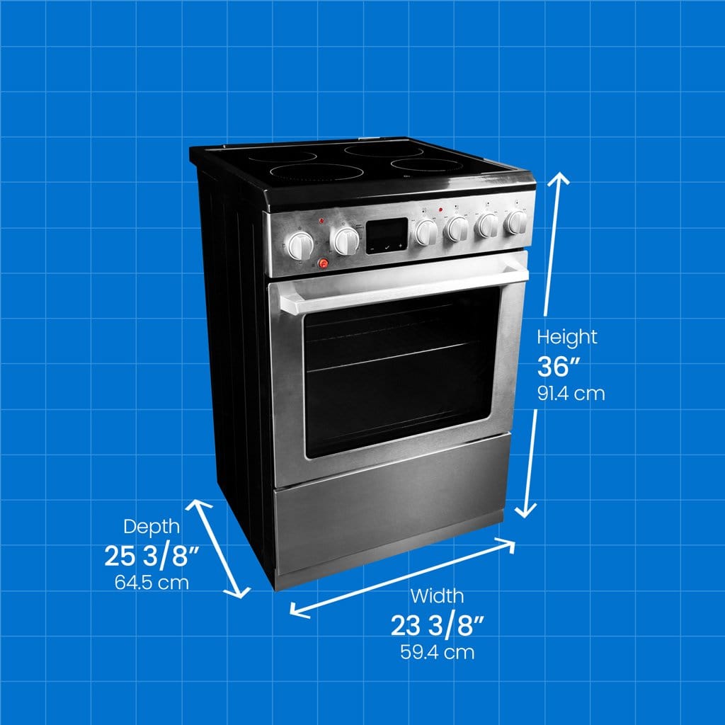 - Small Space, Big Features Compact solution for small space living, 24″ slide-in/free-standing smooth top stainless-Steel range with air fry.