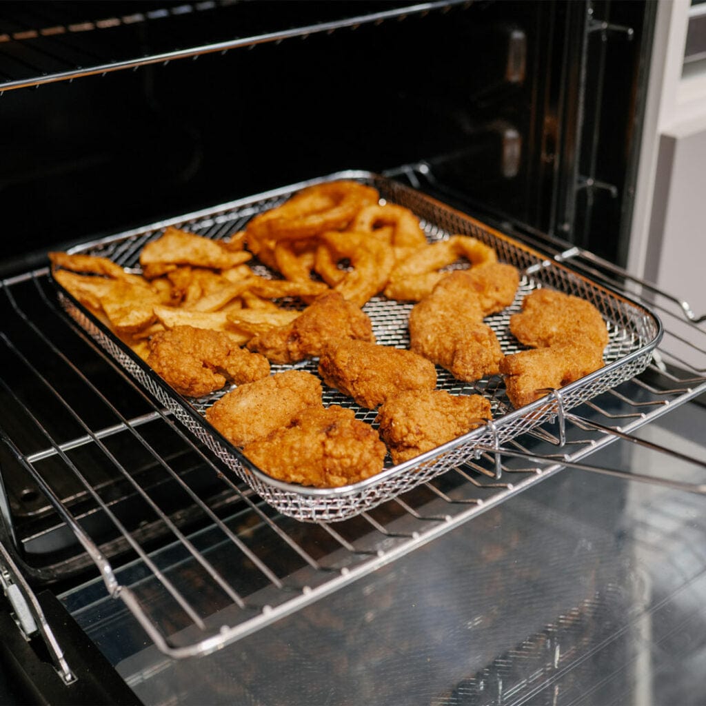 - TruAirFry: Delicious fried food at a fraction of the guilt! Using a top element and fan to circulate hot air around your food for crispy perfection