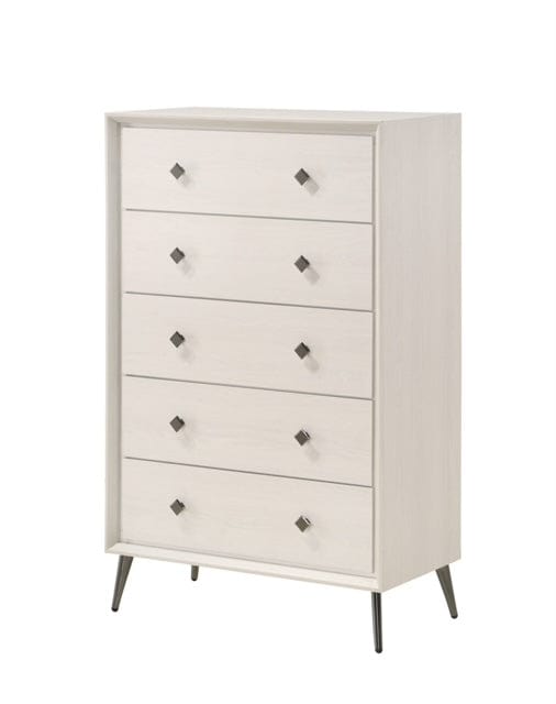 This luxurious set, crafted from tropical hardwood (MDF and veneers), features a white washed finish.