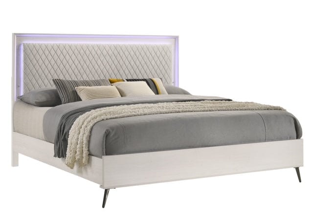 Its padded headboard in white velvet, its diamond-shaped stitching and its LED touch-controlled headboard complete the look, providing a unique and stylish addition to your room.