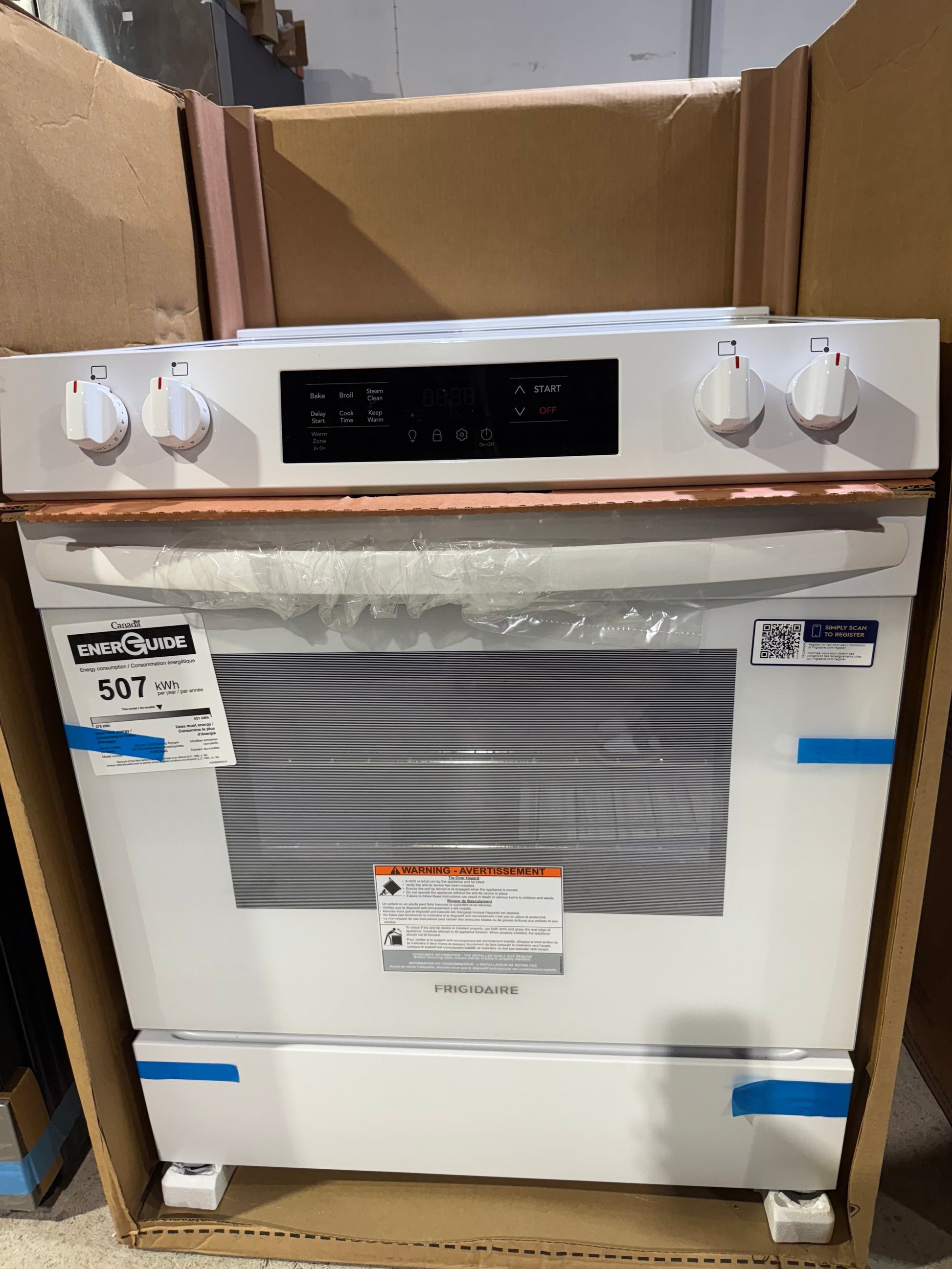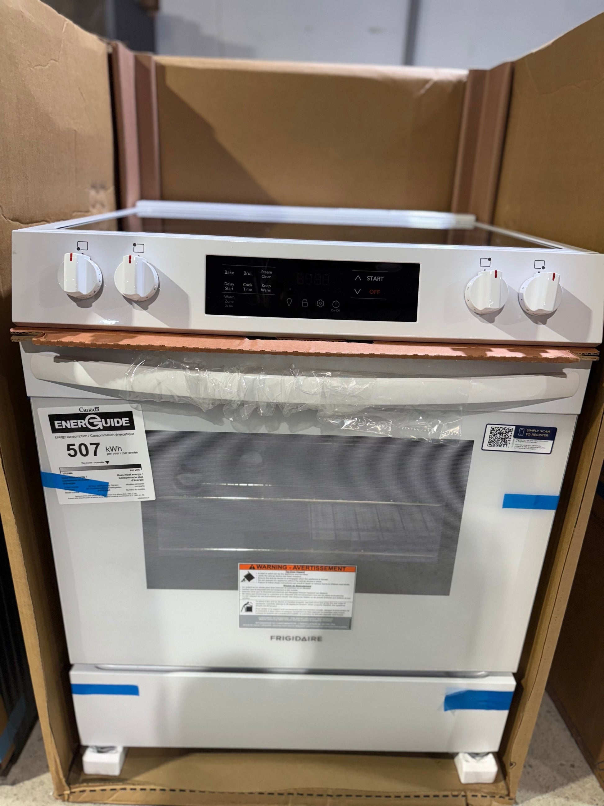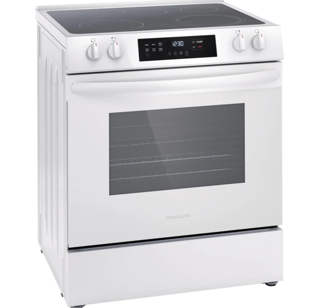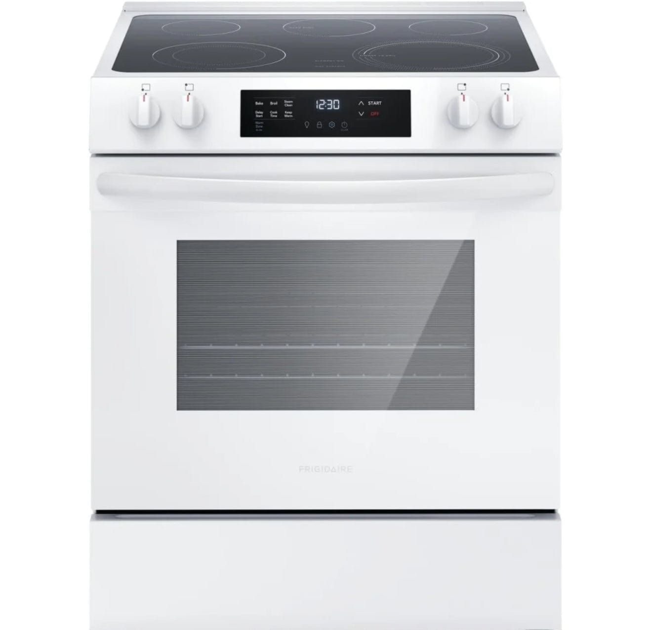 Frigidaire FCFE306CAW Electric Range, 5 cu. ft. Capacity, 30 inch Exterior Width, 5 Burners, Storage Drawer, 3,200 Watts Highest Burner Element, White colour