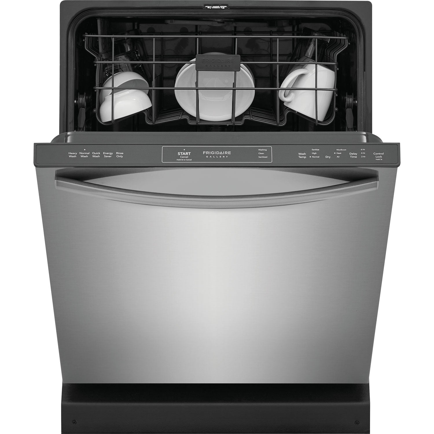 Frigidaire Gallery GDPH4515AF Dishwasher, 24 inch Exterior Width, 52 dB Decibel Level, Fully Integrated, Plastic Interior, 5 Wash Cycles, 14 Capacity (Place Settings), Hard Food Disposal, 2 Loading Racks, Stainless Steel colour