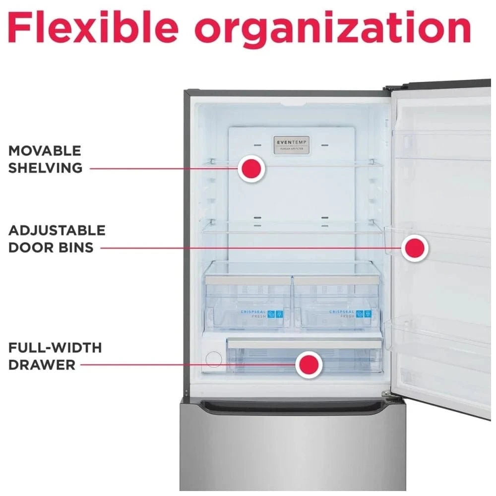 Frigidaire Gallery GRBN2012AF Bottom Freezer Refrigerator, 30 inch Width, ENERGY STAR Certified, Ice Dispenser (Freezer Located), 20 cu. ft. Capacity, Water Dispenser (Interior), Stainless Steel color