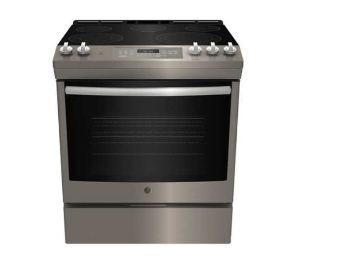 GE JCS840EMES Range, 30" Exterior Width, Electric Range, Self Clean, Glass Burners (Electric), Convection, 5 Burners, 5.3 cu. ft. Capacity, Storage Drawer, 1 Ovens, 3000W, Front Controls, Slate colour