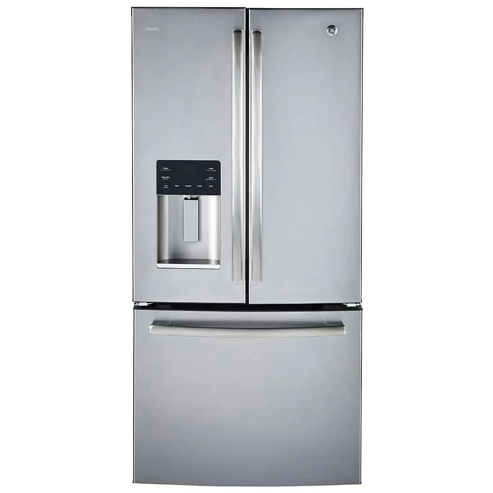 GE Profile PYE18HYRKFS Bottom Freezer French Door Refrigerator, 33 inch Width, ENERGY STAR Certified, 17.5 cu. ft. Capacity, Counter Depth, Water Dispenser (Exterior), Ice Dispenser (Thru Door), Stainless Steel colour APF technology
