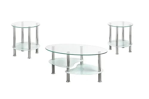 8mm Tempered Clear Glass Top With White Glass Bottom and Chrome Legs