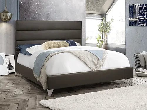 Grey PU Bed with Horizontal Deep Tufted Panels and Chrome Legs