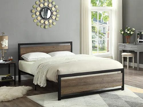 Wood Panel Bed with Steel Frame