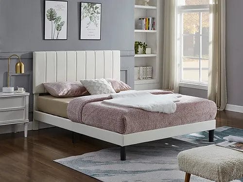 White PU Bed with Vertical Tufting