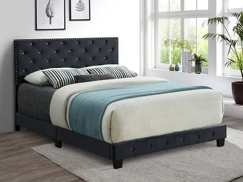 Black Velvet Bed with Nailhead Rhinestone Details