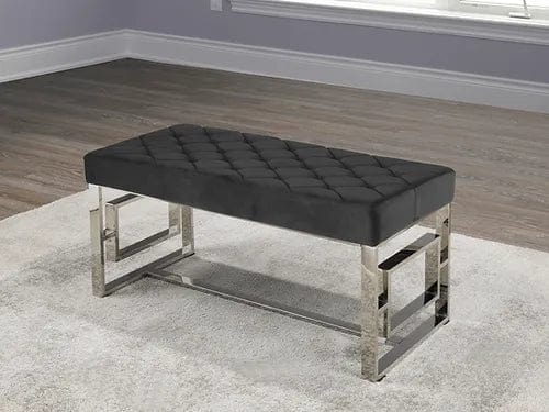 Chrome Bench with Black Velvet Top -