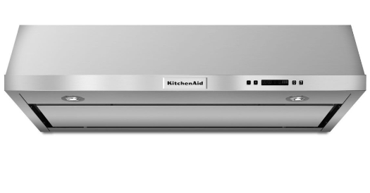 KitchenAid KVUB606DSS Range Hood, 36 inch Exterior Width, Canopy, Under-Cabinet, 600 CFM, 7.0, LED, Dishwasher Safe Filters, 4, Stainless Steel colour Blower Included