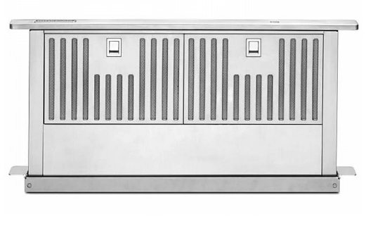 KitchenAid KXD4630YSS Downdraft, 30" Exterior Width, 600 CFM, Outside / Ducting, NA, Dishwasher Safe Filters, Aluminum Mesh, Stainless Steel colour Blower Included