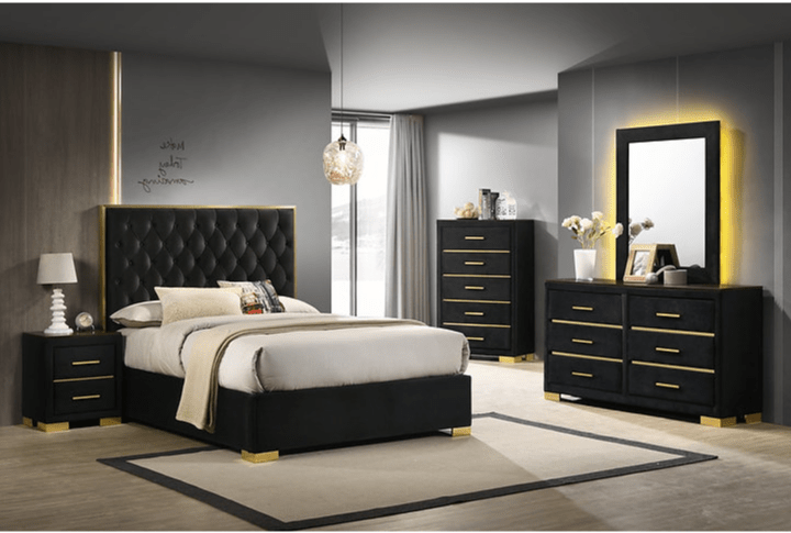Bedrooms Set = 1x Bed, 1x D&M, 1x Chest, 2x Nightstands