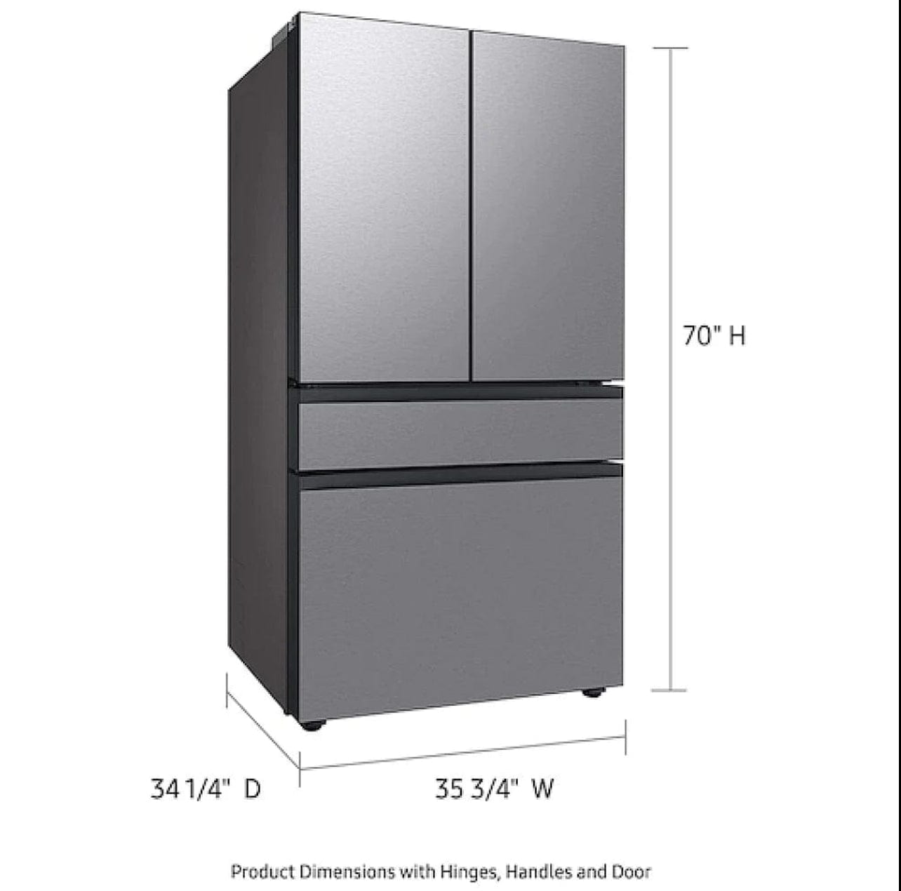 Samsung Bespoke RF29BB8600QLAA French Door Refrigerator, 36 inch Width, ENERGY STAR Certified, 28.8 cu. ft. Capacity, Stainless Steel colour Beverage Center, Dual Ice Maker with Ice Bites, Twin Cooling Plus, Metal Cooling Interior, FlexZone Drawer
