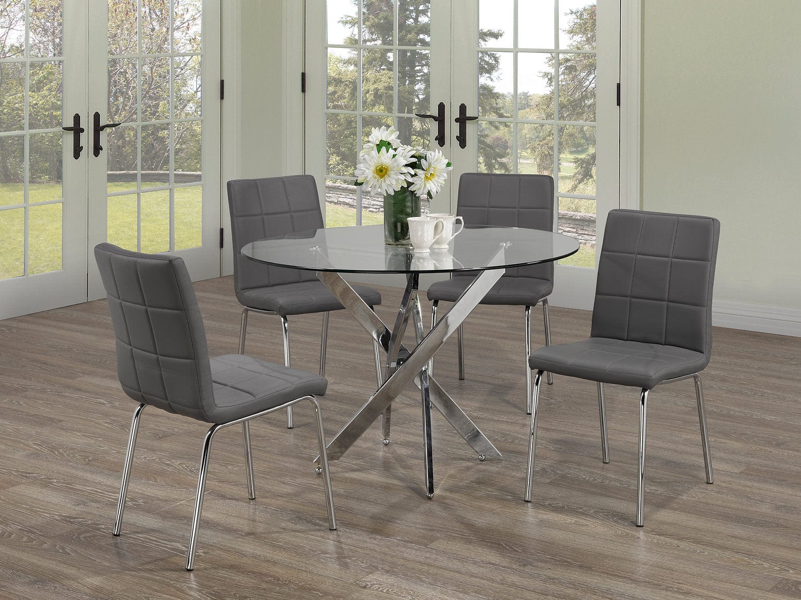Chairs: Grey PU Cushion Seats with Chrome Legs