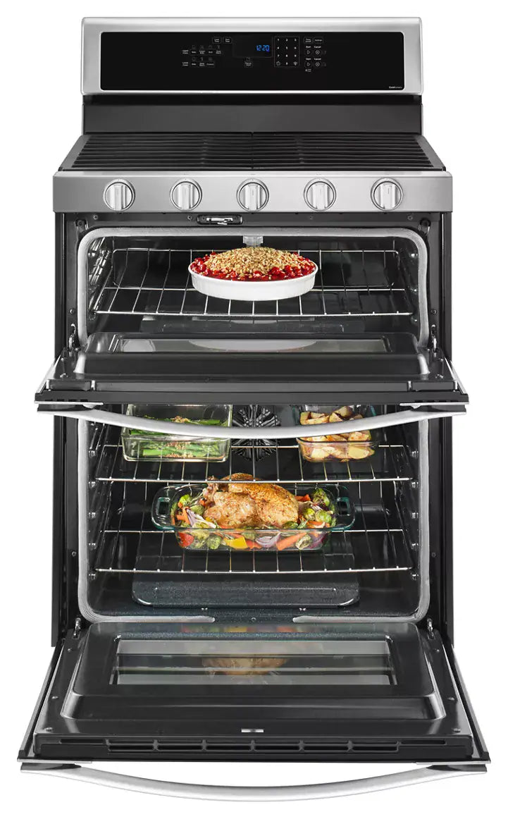 Whirlpool® 6.0 Cu. Ft. Gas Double Oven Range with Center Oval Burner WGG745S0FS10