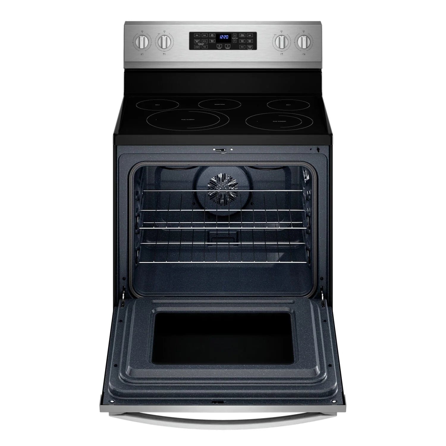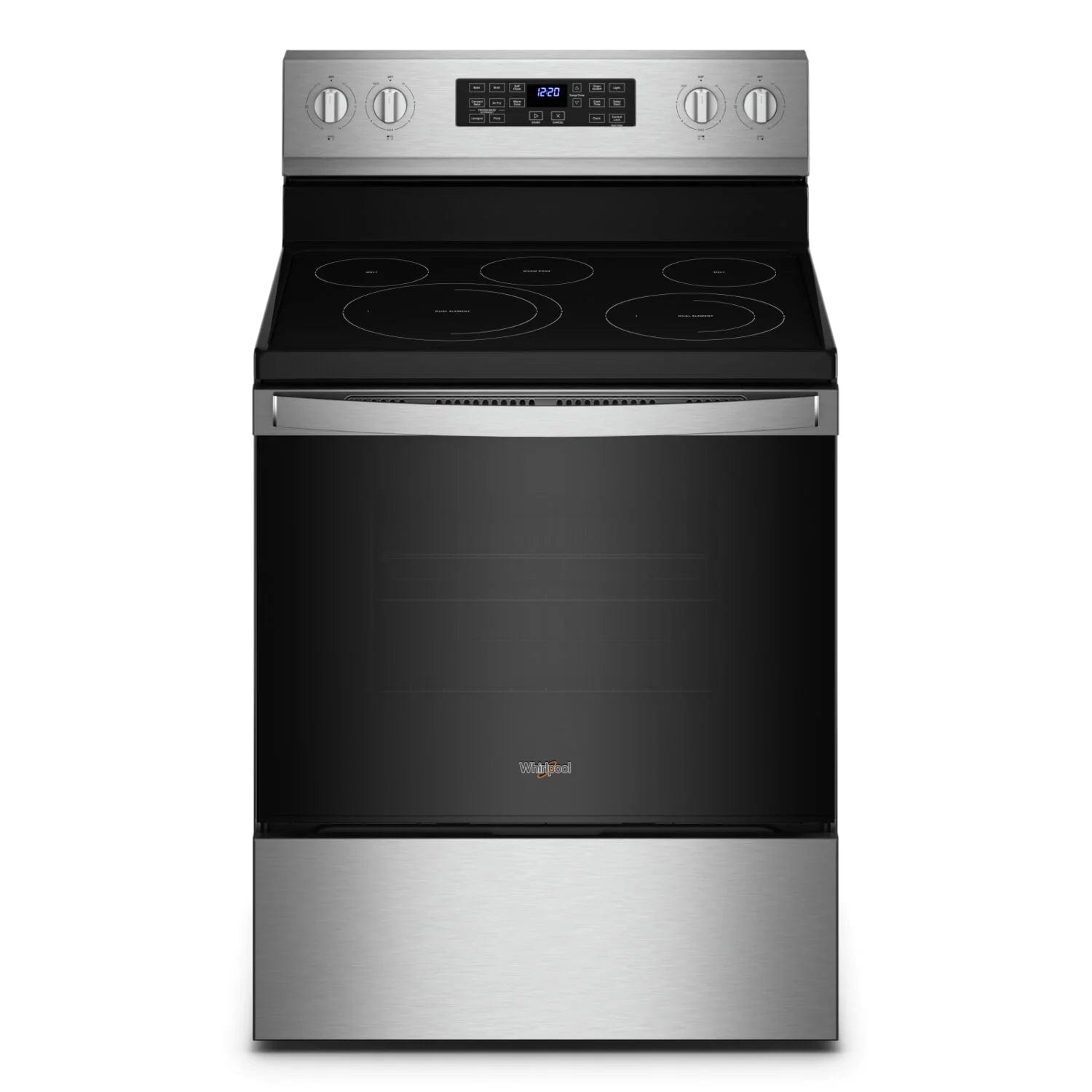 Whirlpool Electric Range (YWFE550S0LZ): 30 inch Exterior Width, Self Clean, Convection, 5 Burners, 5.3 cu. ft. Capacity Storage Drawer -- Stainless Steel color