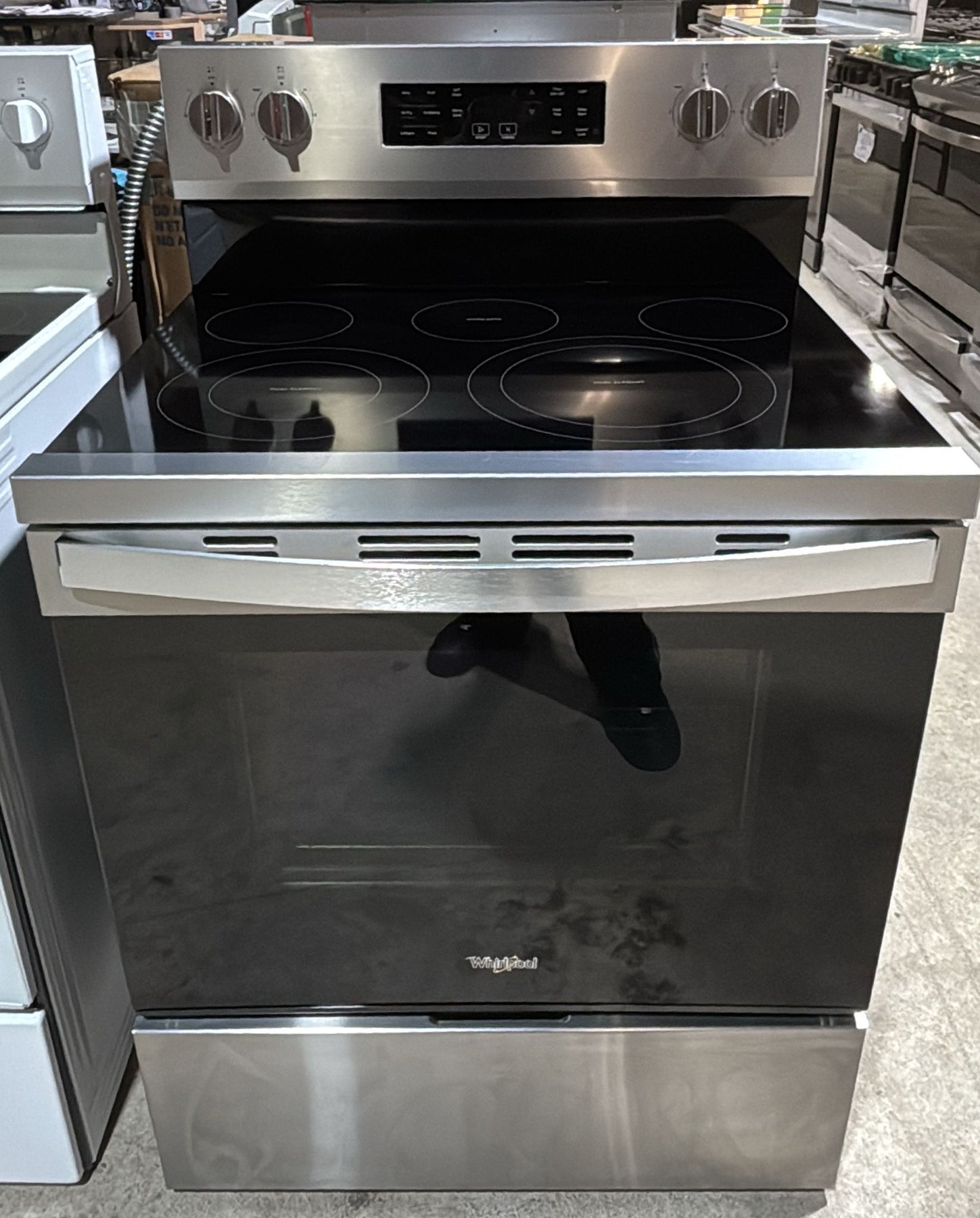Whirlpool YWFES5030RZ Electric Range, 5.3 cu. ft. Capacity, 30 inch Exterior Width, Convection, 5 Burners, Storage Drawer, Yes, Self Clean, 3,000 W Highest Element, Stainless Steel colour